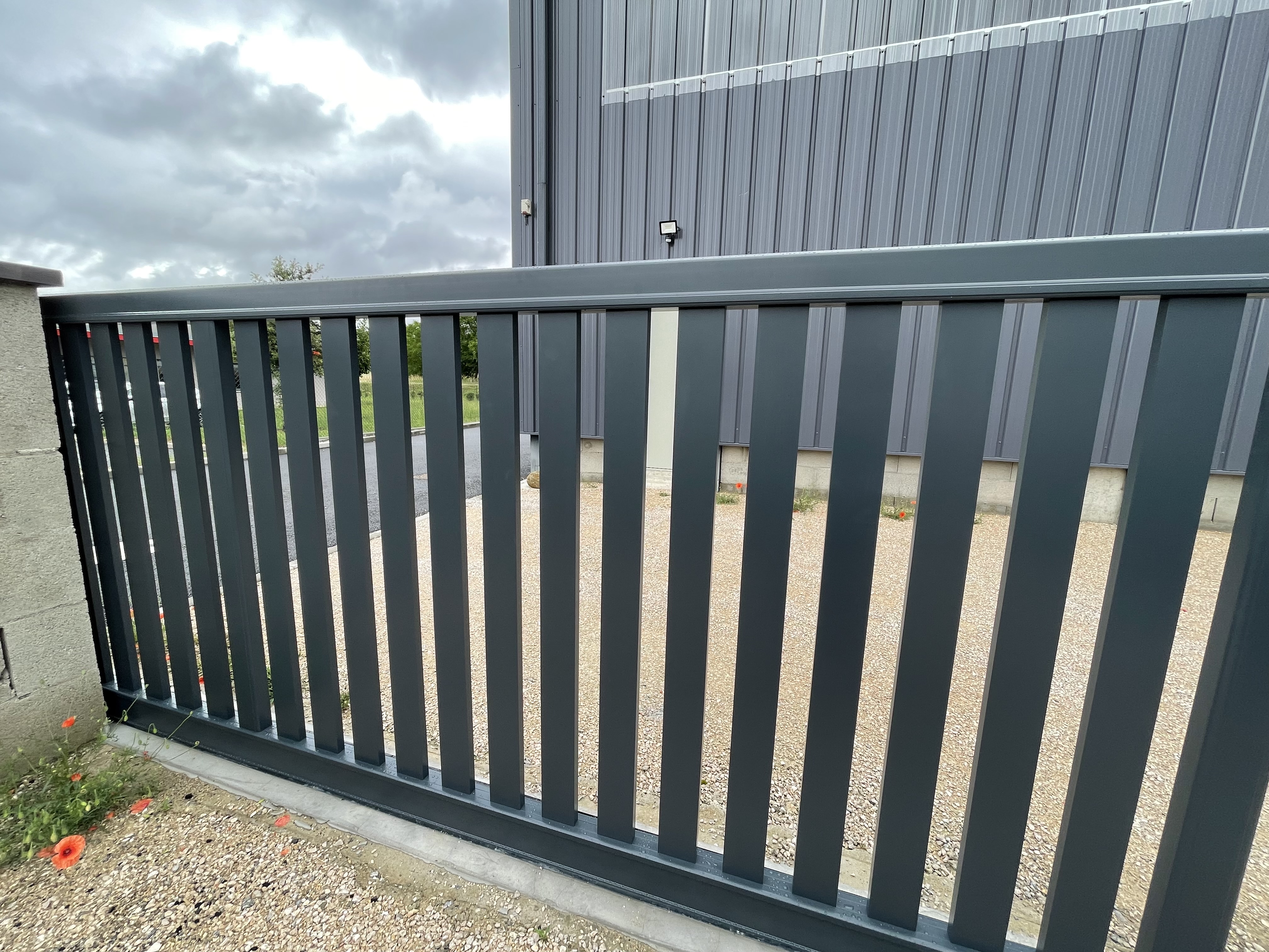 Posté le 29/10/2021 à 10:40"Portail coulissant motorisé alu laqué grande largeur. Bon rapport qualité prix. Poseurs pros et agréables."